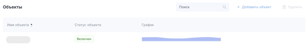 В области Объекты выберите интересующий вас объект и нажмите на миниатюру графика в его строке. При этом в левой области страницы откроется меню для работы с выбранным объектом