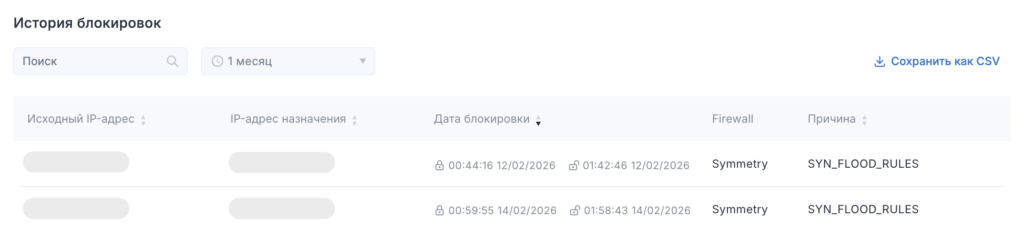 Просмотр сведений о блокировках IP-адресов