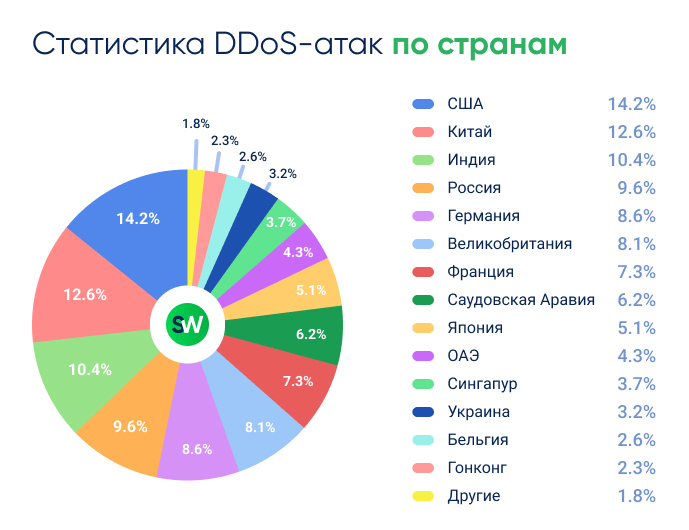 Тройка стран-лидеров осталась прежней: США, Китай и Индия. На эти страны снова пришлось более трети всех DDoS-атак в мире.