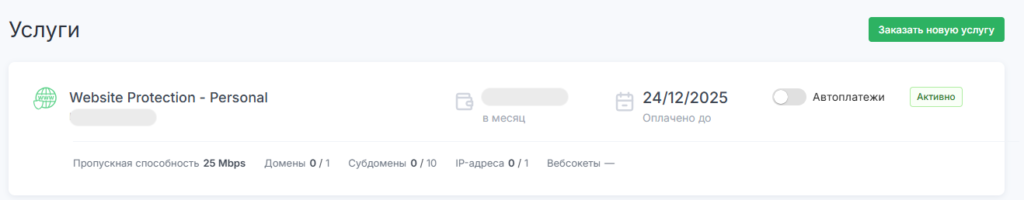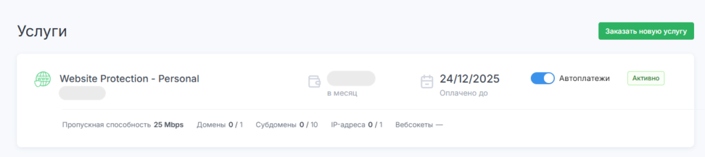 Чтобы отключить автоплатёж для одной услуги, откройте вкладку Дашборд и установите переключатель Автоплатежи во выключенное положение.