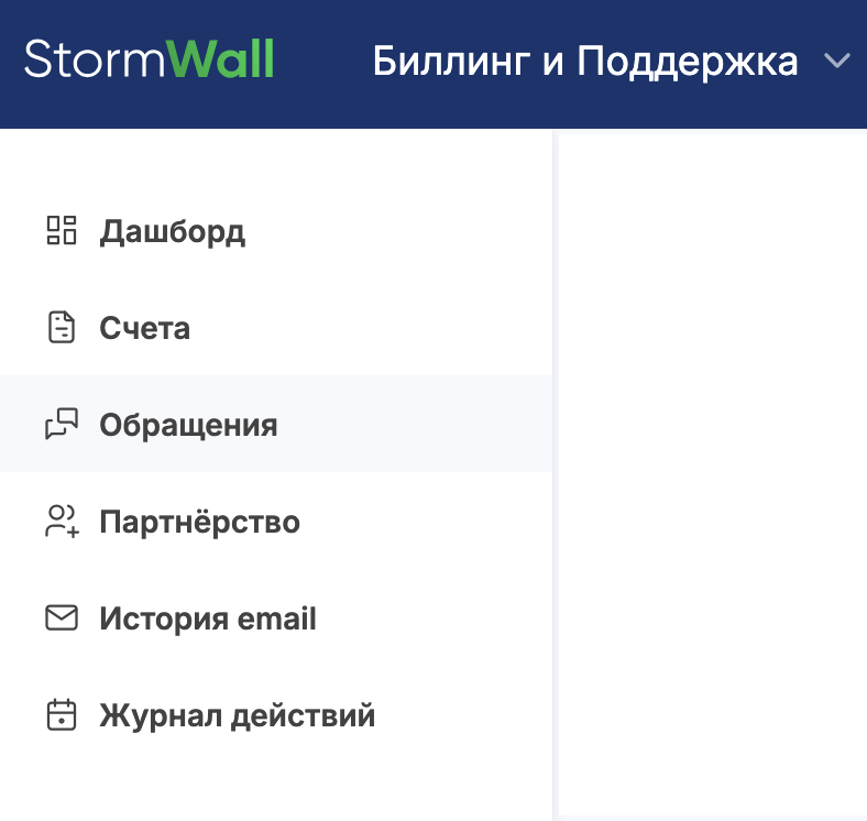 В верхней панели меню перейдите на вкладку Биллинг и Поддержка.