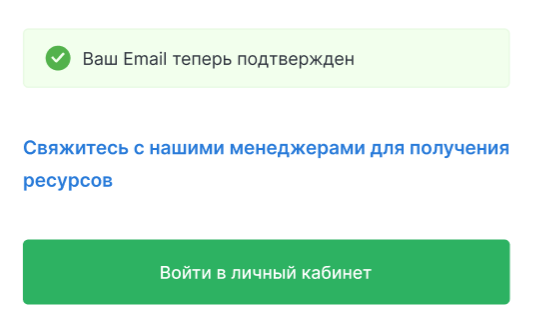 После перехода по ссылке из письма вы увидите сообщение об успешном завершении регистрации.
