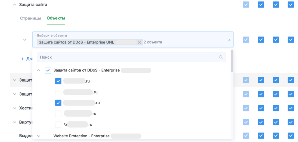 Если вы ограничили доступ к услугам и/или доменам для отдельных пользователей, то при подключении новой услуги (или добавлении домена) необходимо указать уровень доступа к добавленным ресурсам.