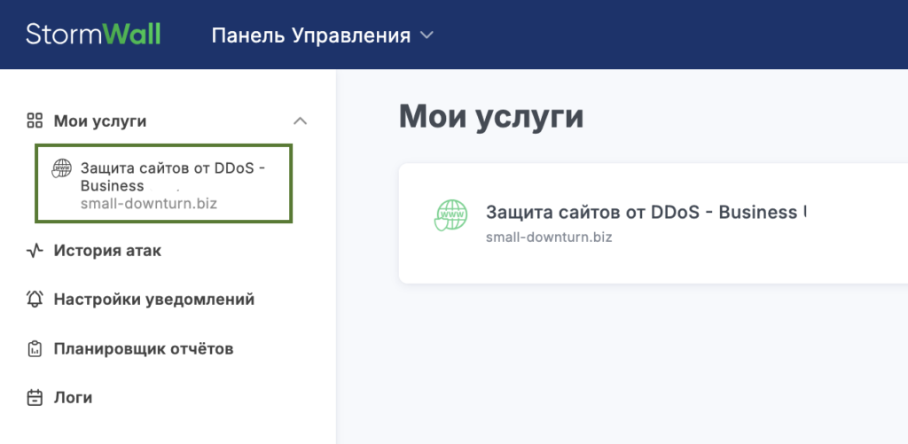Как только услуга будет подключена, она отобразится в главном разделе учетной записи и в области Мои услуги. Кликните по ее названию для открытия настроек.