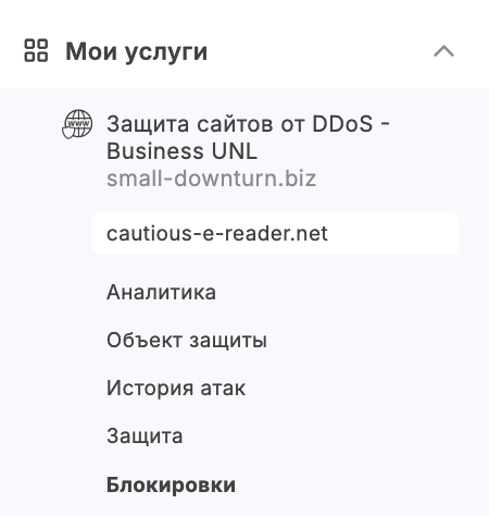 Выберите левом меню выберите пункт Блокировки.